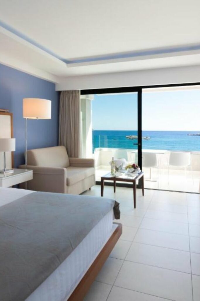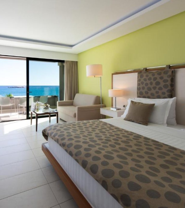 This elegantly furnished room offers the option of King size or twin beds, has the possibility of of one extra bed and provides a panoramic view of the Aegean Sea.