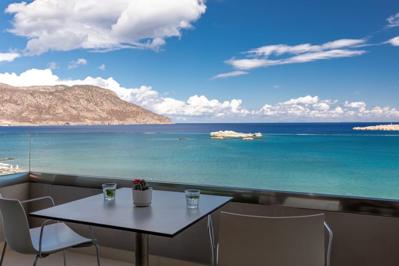 This elegantly furnished room offers the option of King size or twin beds, has the possibility of of one extra bed and provides a panoramic view of the Aegean Sea.