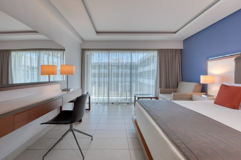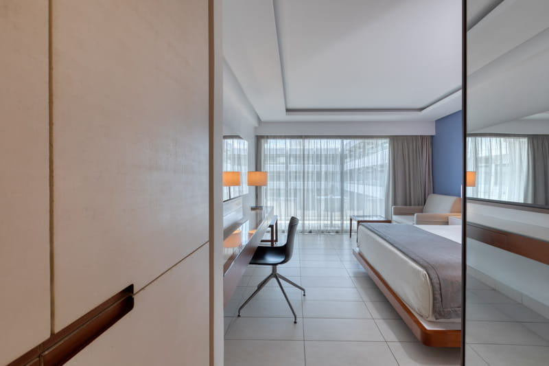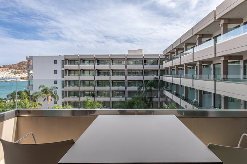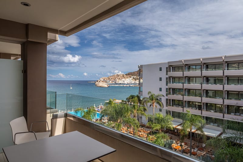 This elegantly furnished room offers the option of King size or twin beds, has the possibility of of one extra bed and provides a private balcony with sea view.